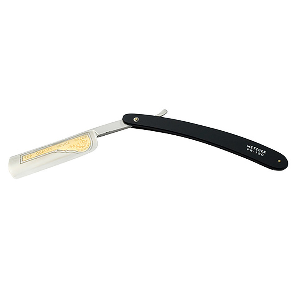 Бритва опасная PR-190 Metzger выполнена брендом Mizuka, отличающимся непревзойденным качеством японской стали. Пройдя процесс закалки в вакуумных печах с высокими температурами, сталь становится очень прочной, долго сохраняя прецизионную заточку, осуществляемую специалистами фабрики Metzger. Дизайн минималистичный – пластиковый черный корпус длиной около 16 сантиметров с выдвижным лезвием, имеющим изогнутую форму. На верхней стороне лезвия можно видеть золотую вставку с резьбой, на которой обозначен знак высокого качества использованной в процессе производства стали. Бритва опасная ПР-190 Метцгер – выбор профессионалов, ценящих в инструменте высокие технологические качества.