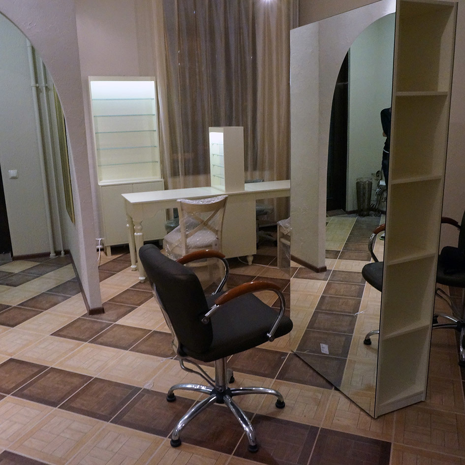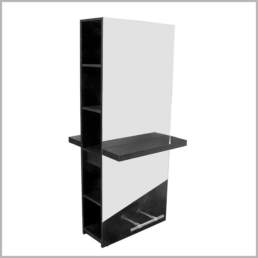 Двухстороннее зеркало. Каркас зеркала выполнен из ЛДСП. Фронтальные поверхности и полки облицованы слоистым пластиком.