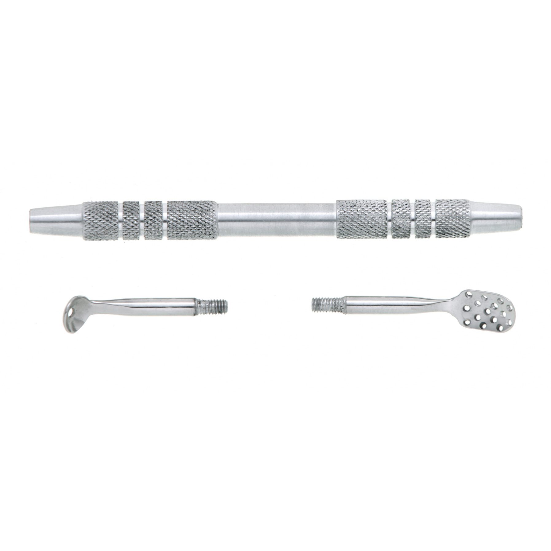 Две рабочие насадки обеспечивают превосходный результат: ситечко (шумовка) с пятнадцатью мелкими техническими отверстиями предназначено для устранения излишков кожного сала и мелких комедонов, насадка с одним отверстием применяется в качестве угревыдавливателя.Ложка удобно лежит в руке, эргономична, благодаря мелкой насечке во время работы рука не скользит и процесс становится максимально комфортным.