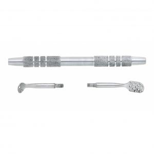 Ложка УНО со съемными насадками ‒ инструмент для механической чистки лица. Превосходно очищает поры, не оставляя на коже рубцов и ссадин, не травмирует кожный покров и не образует пигментаций.