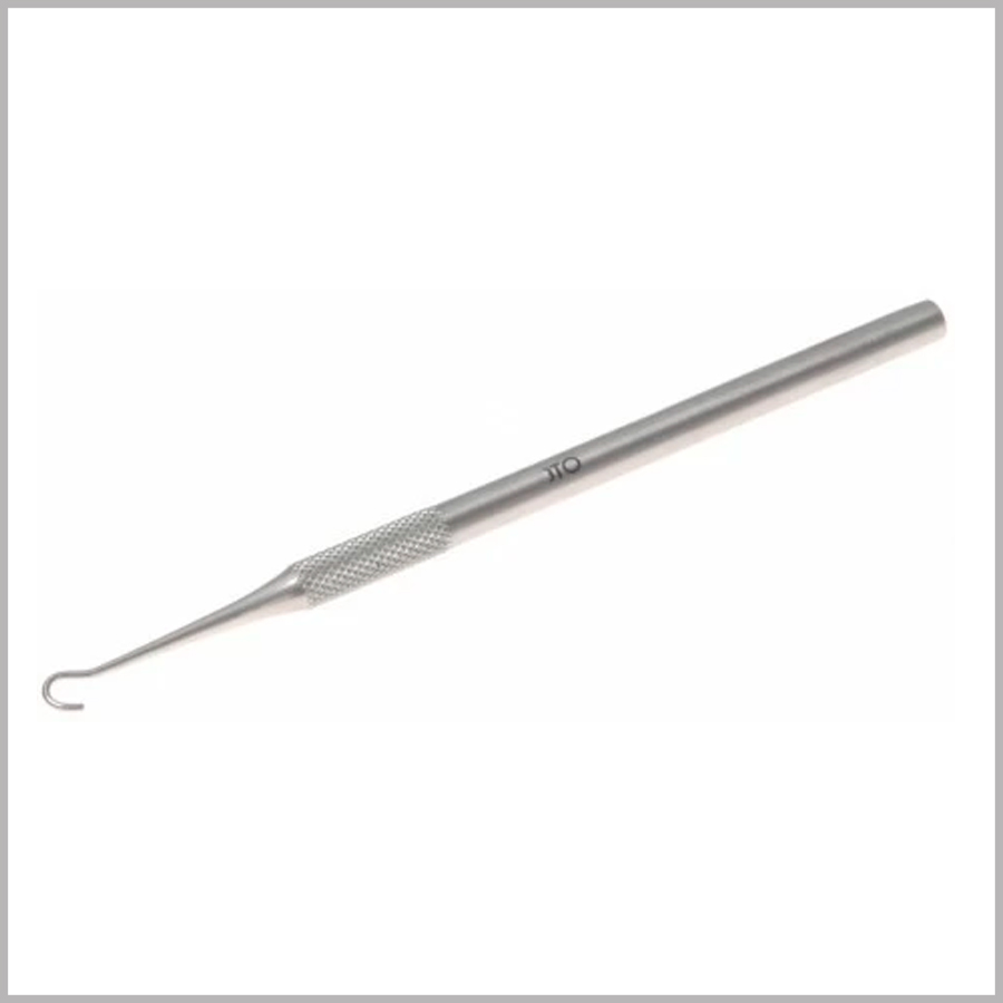 Односторонний подологический крючок предназначен для скручивания тонкой проволоки в системе 3TO. Две ножки скобы скручиваются вместе с петлей с помощью данного инструмента.
