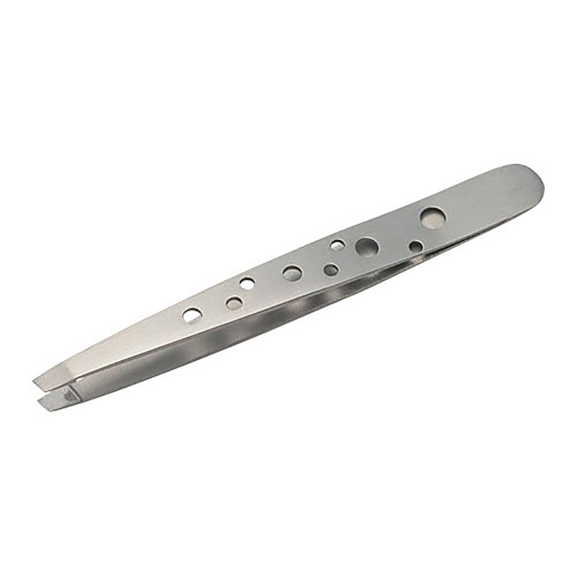 Пинцет предназначен для удаления волос и коррекции бровей. Отверстия на ручках препятствуют скольжению пальцев по инструменту. Скошенные кромки пинцета обеспечивают идеальный захват тончайших волосков и быстро избавляют от них. При нажатии рабочие кромки не прогибаются за счет оптимальной толщины стали. Идеальная шлифовка и полировка кромок гарантируют инструменту долговечность, а мастеру – комфорт и легкость в работе с ним.