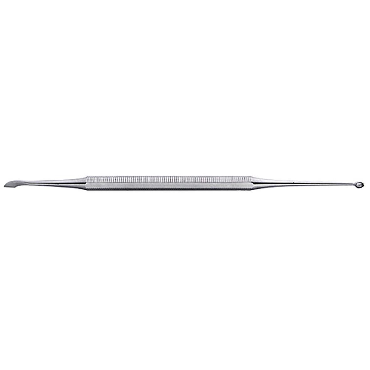 Имеет две рабочие поверхности с двух сторон: с одной стороны ‒ лопатка, выполняющая основную функцию этого инструмента, а именно: отодвигание кутикулы. Вторая рабочая сторона представляет собой ложечку, предназначенную для очищения ногтевого плата от птеригия. Основная задача ‒ очищать свободный край ногтя и его боковые части от загрязнения. Ручка инструмента ровная, с антискользящей поверхностью, удобно лежит в руке и гарантирует мастеру комфорт и легкость в работе с ним.