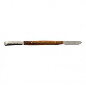 Представляет собой инструмент длиной 135 миллиметров, с одной стороны находится шпатель – плоский металлический наконечник, с помощью которого удобно отодвигать ноготь и освобождать боковые валики. С другой стороны располагается острый нож, с помощью которого можно корректировать форму ногтя, убрать ороговевшие частицы эпителия.