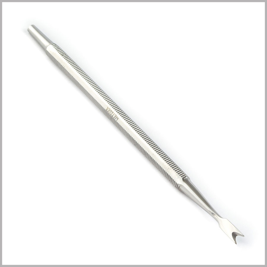 Аппликатор для пластин - тампонодержатель. Используется при педикюре. Незаменим при работе с "вросшим ногтем". Аккуратно удаляет отмершую кожу под ногтями. Инструмент с мелкой насечкой, что делает его удобным в обращении.