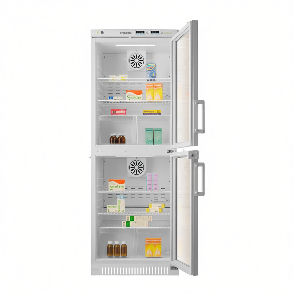 Холодильник фармацевтический двухкамерный ХФД-280-1(ТС) ПОЗиС объемом 280 л предназначен для хранения лекарственных препаратов, вакцин, реагентов и биологических образцов при температуре от +2°С до +15°С.