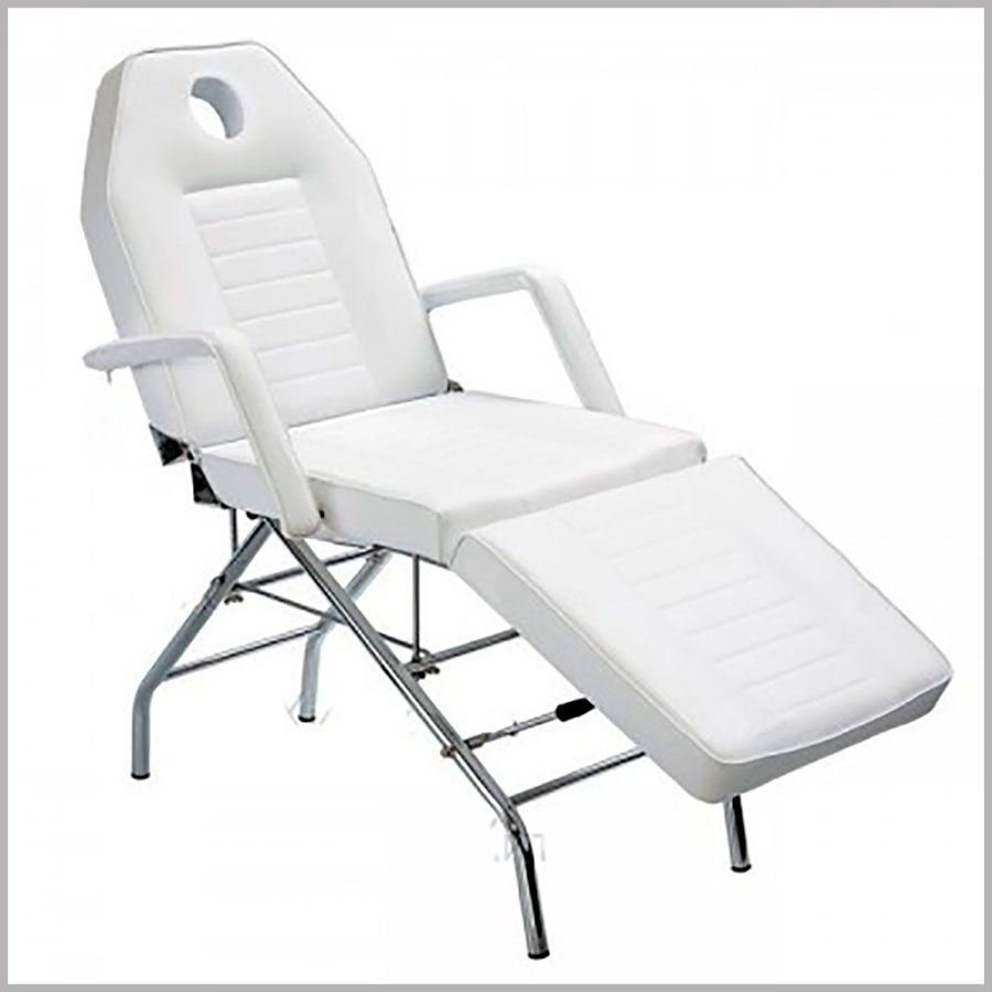 Кресло раскладывается в горизонтальное положение. Комплектуется специальным анатомическим матрасом для большего комфорта клиента, подлокотниками. На подголовнике есть специальное отверстие для лица, чтобы удобно разместить клиента на время проведения различных массажных процедур.