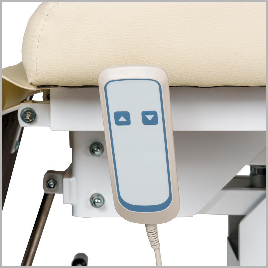 Комплектация: каркас, сиденье, спинка с вырезом для лица и съемной подушкой-подголовником, мягкий элемент под ноги, подлокотники, электрический подъемник.