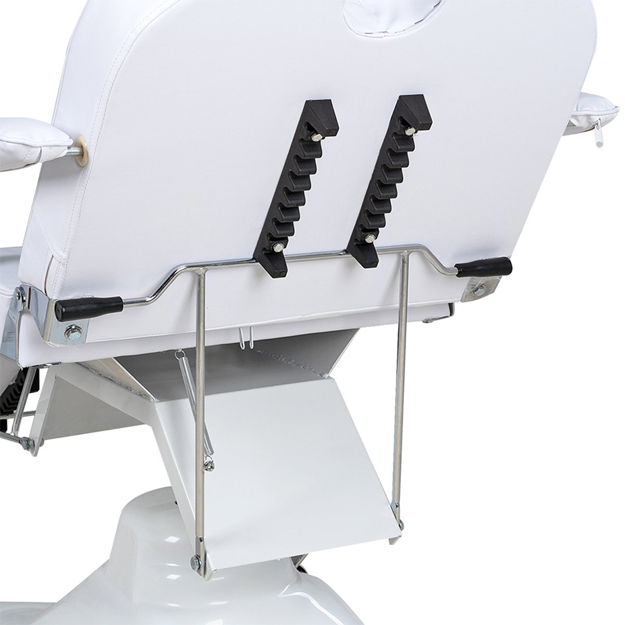 В процессе обслуживания клиентов мастер имеет возможность регулировать высоту подъёма подножек, сиденья и спинки при помощи надежной гидравлики. Для этого в боковой части основания предусмотрена хромированная ножная педаль. Регулировка спинки, подножек и наклон сиденья осуществляется механически, кресло полностью раскладывается в горизонтальное положение и вращается вокруг своей оси. При изменении угла наклона отдельных сегментов их положение надежно фиксируется специальными механизмами.