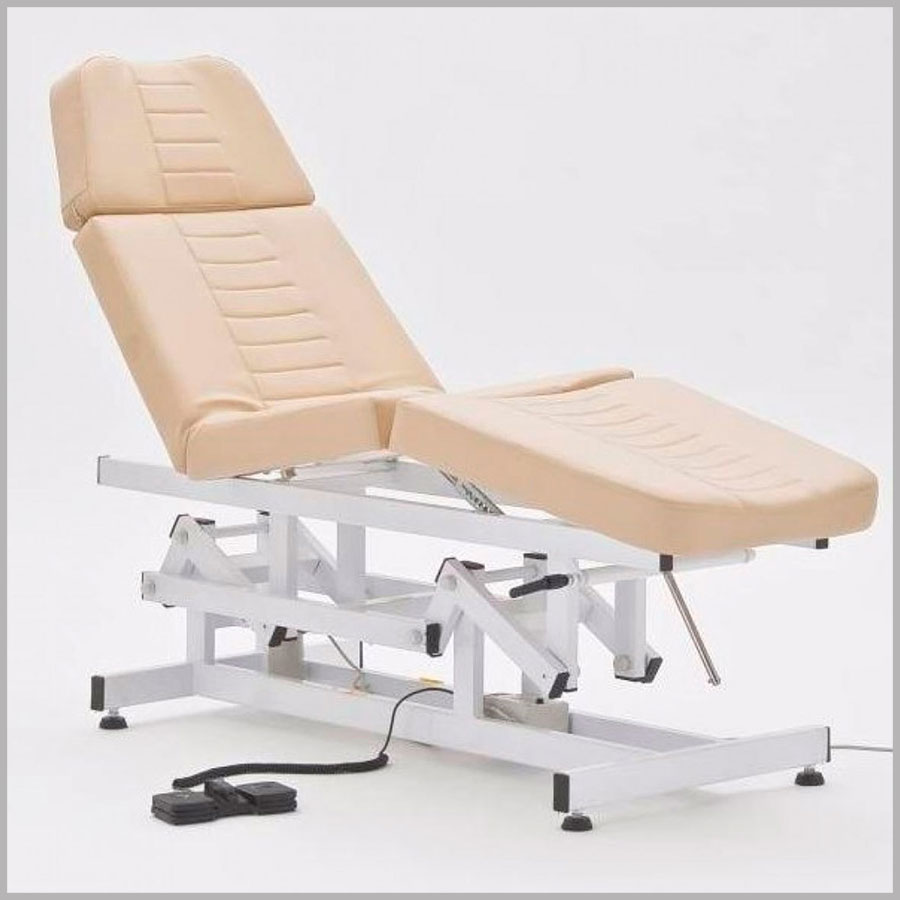 Кушетка с электрической регулировкой высоты, легко раскладывается в горизонтальное положение. Угол наклона спинки регулируется с помощью пневматики, регулировка нижней части осуществляется механическим способом.
