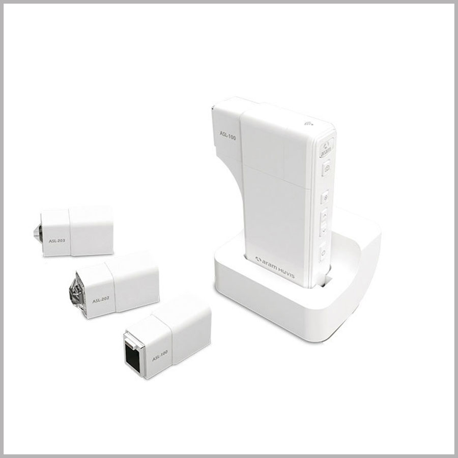 Наличие трех сменных линз с увеличением 30, 60, 200 и 600 раз, а также встроенный измеритель влажности кожи делает прибор многофункциональным: насадка ASL-100 для кожи лица, насадки ASL-202, 203 для кожи головы и волос.