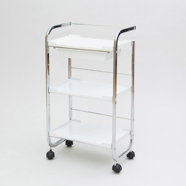 Материалы, из которых изготовлена тележка, являются экологически безопасными и устойчивыми к любым негативным воздействиям, поэтому изделие можно использовать как в салонах красоты, так и в медицинских учреждениях.