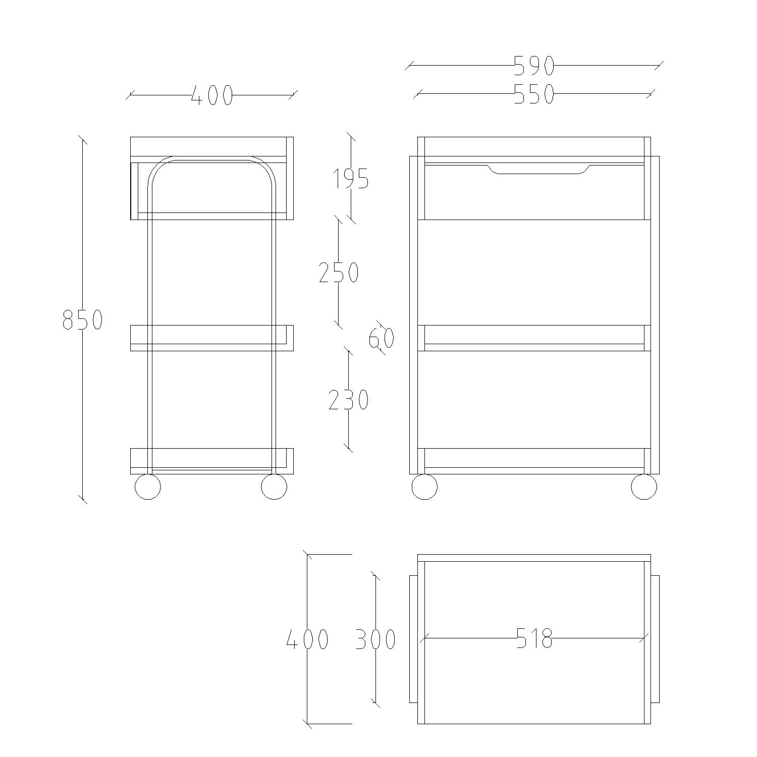 Имеет три полки и выдвижной ящик из ламинированного ДСП.