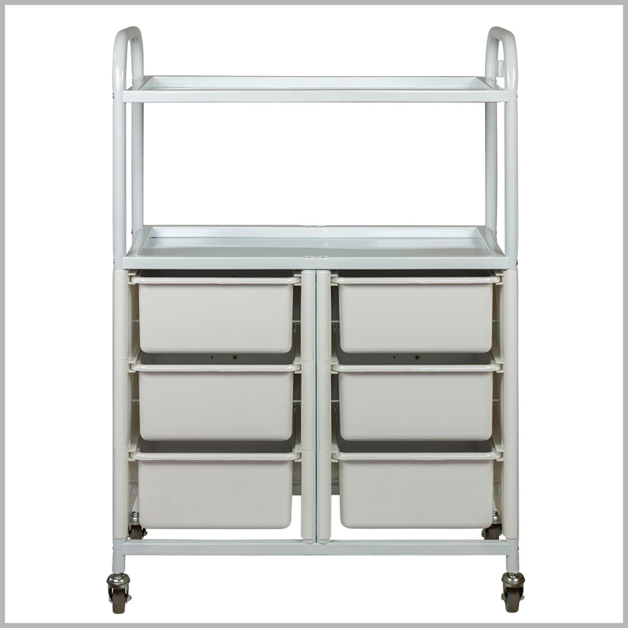 Комплектация: каркас на поворотных колесиках, 6 ящиков, 2 полки.
