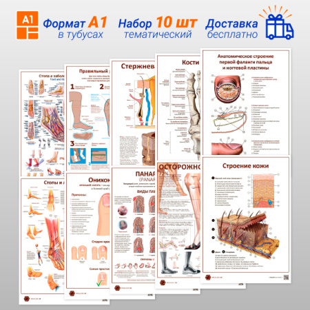 В набор входят такие плакаты:- Стопа и заболевания стопы (русский и английский язык)