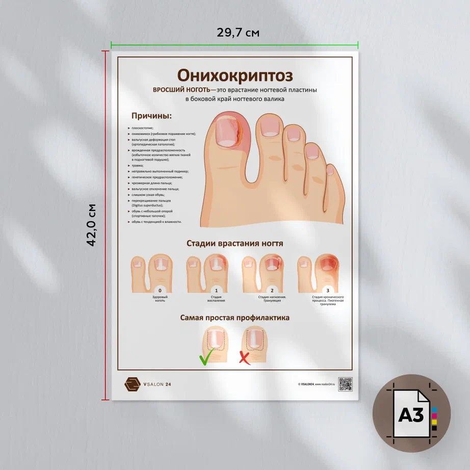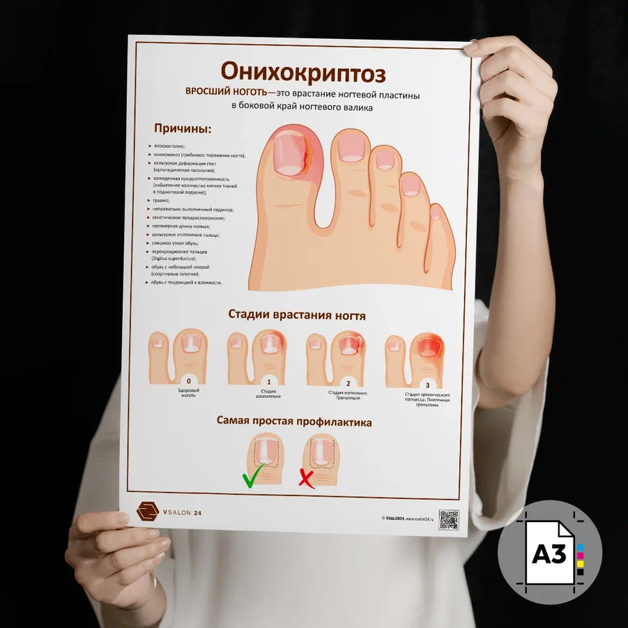 Представляем вашему внимание плакат ОНИХОКРИПТОЗ (вросший ноготь) в формате А3 в Ваш кабинет.