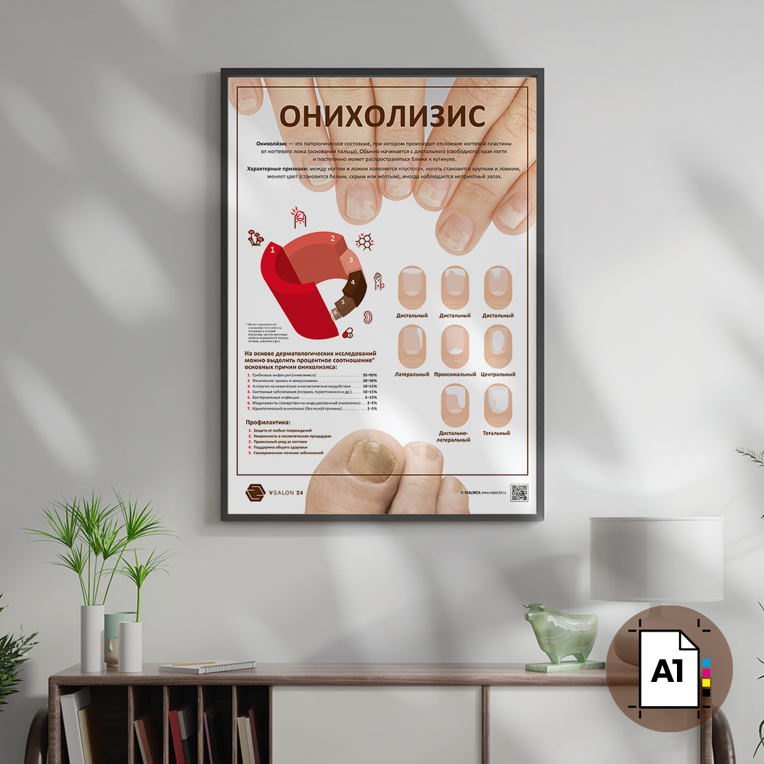 Оформите свой кабинет или учебное пространство с помощью плаката "Онихолизис" от VSALON24 и обеспечьте себе доступ к актуальным знаниям в любое время!