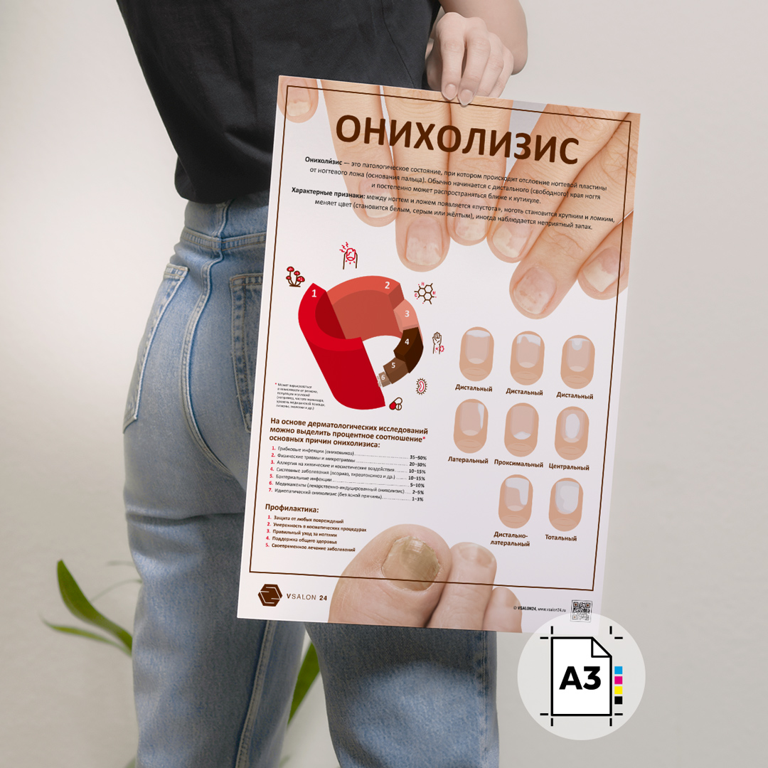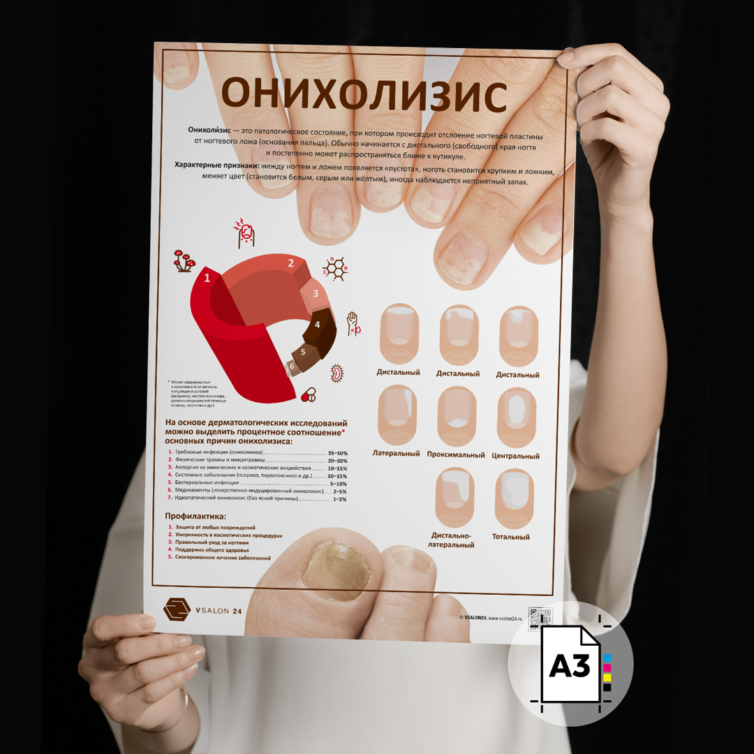 Оформите свой кабинет или учебное пространство с помощью плаката "Онихолизис" от VSALON24 и обеспечьте себе доступ к актуальным знаниям в любое время!