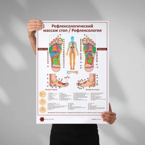 Представляем Вашему вниманию плакат Рефлексологический массаж стоп / Рефлексология в формате А1 в Ваш кабинет.Печать высокого качества 4+0 на белой бумаге Сити.