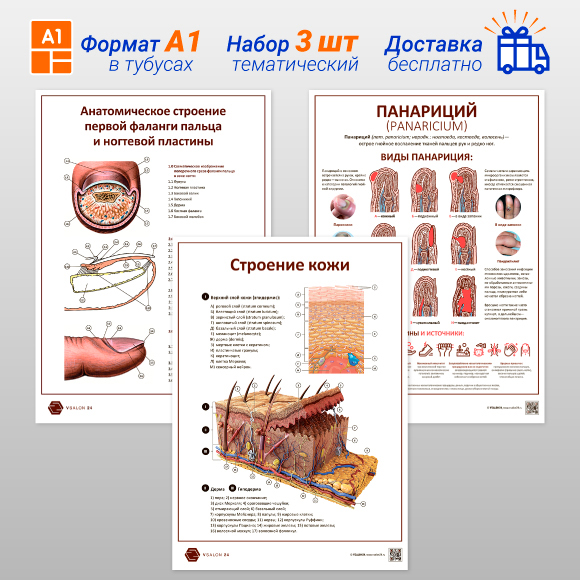 Анатомическое строение первой фаланги пальца и ногтевой пластины (плакат А1)