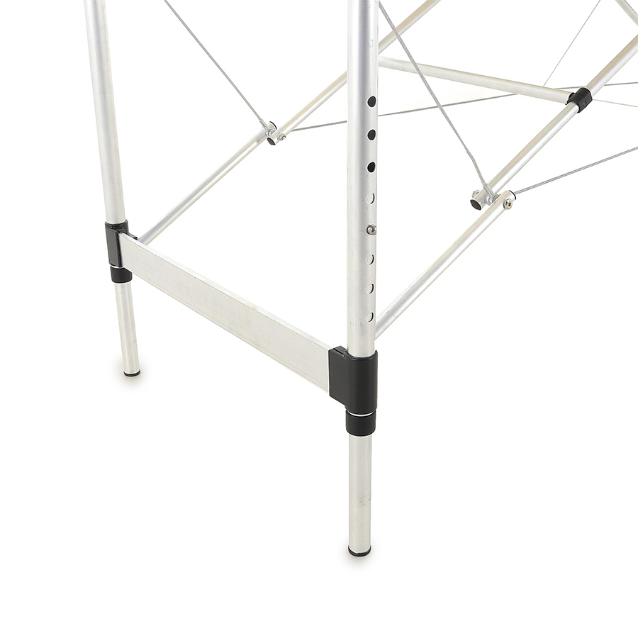Этот стол отличается высокой устойчивостью благодаря прочному алюминиевому каркасу и усиленной системе растяжек. Многослойный клееный шпон в конструкции ложемента гарантирует долговечность и надежность.