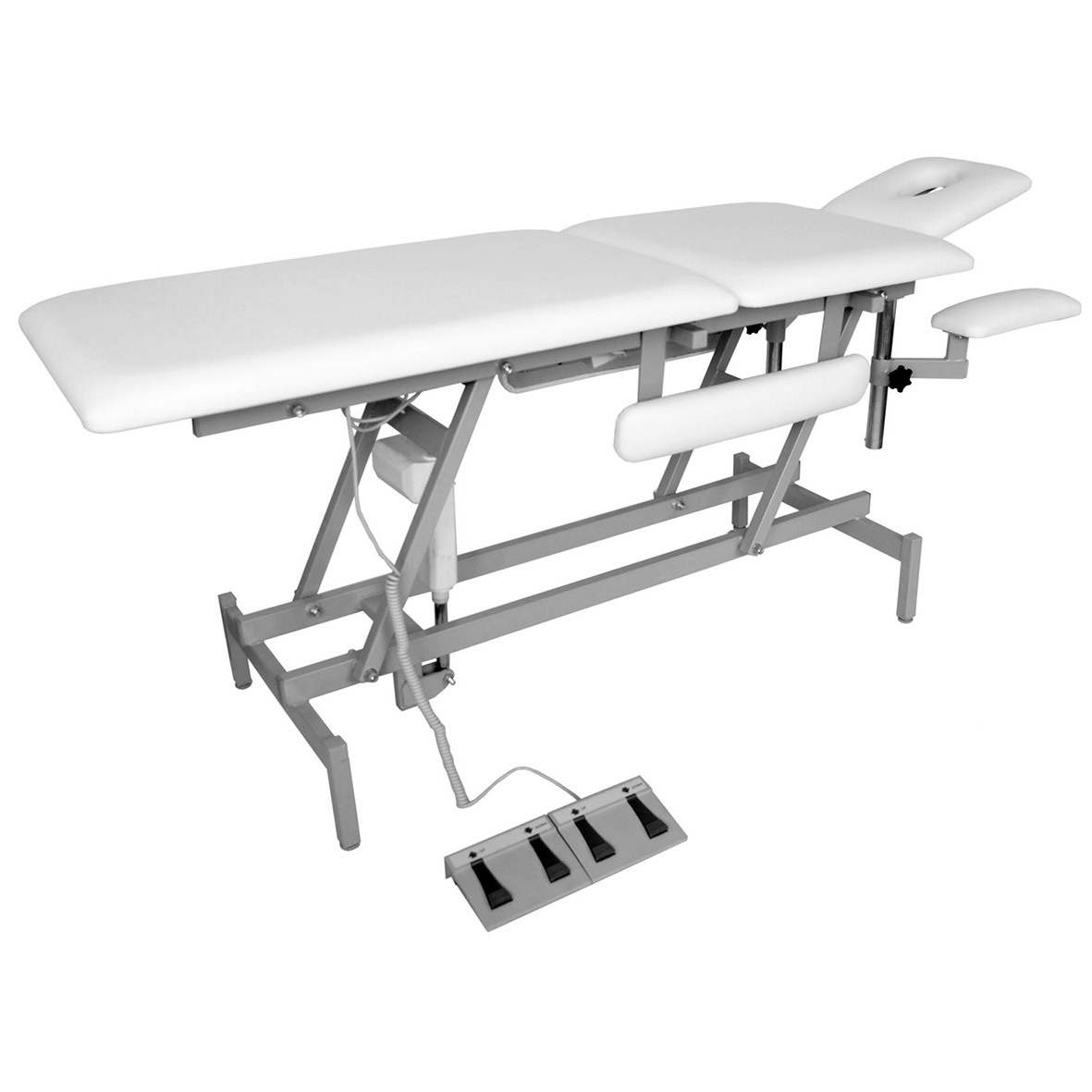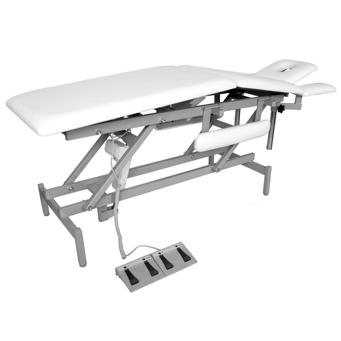 Высота стола и угол наклона средней части регулируются при помощи двух независимых электромоторов, для изменения угла наклона подголовника используется пневмопривод.