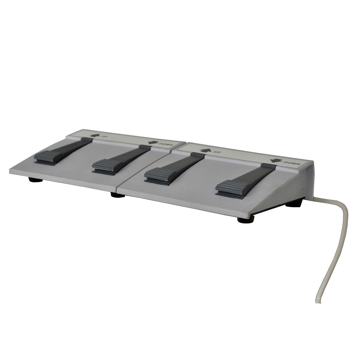 Стол оснащен двумя парами мягких подлокотников. Основная пара предназначена для поддержки рук клиента при положении «руки к голове» и регулируется вверх-вниз, влево-вправо. Дополнительные подлокотники используются в нижнем положении как опора для колен мастера, в верхнем – как дополнительное расширение поверхности стола.