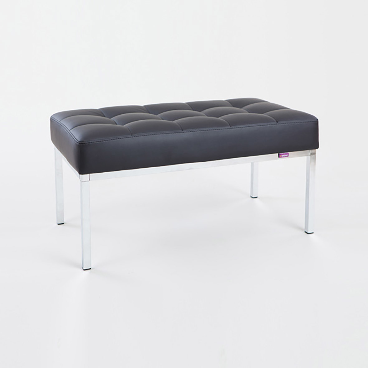 Банкетка обладает внушительным запасом прочности благодаря стальному каркасу. Подушка выполнена из экокожи и наполнителя средней жесткости.