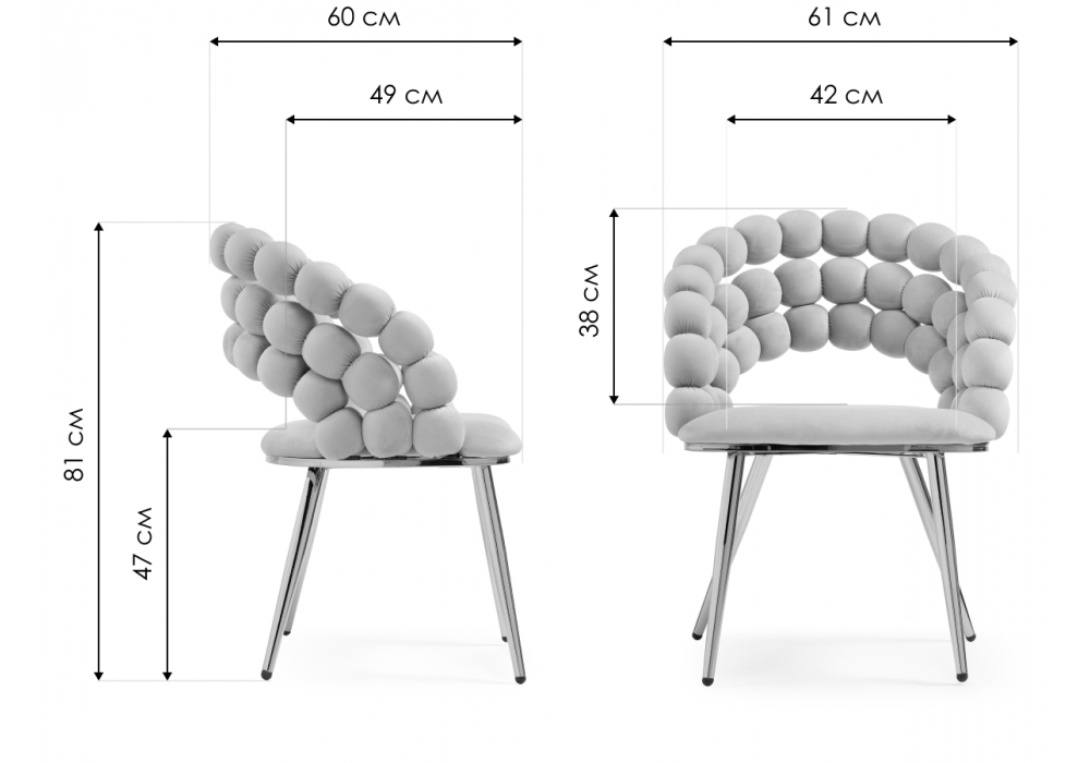 СтулШирина 61 см x Глубина 60 см x Высота 81 см