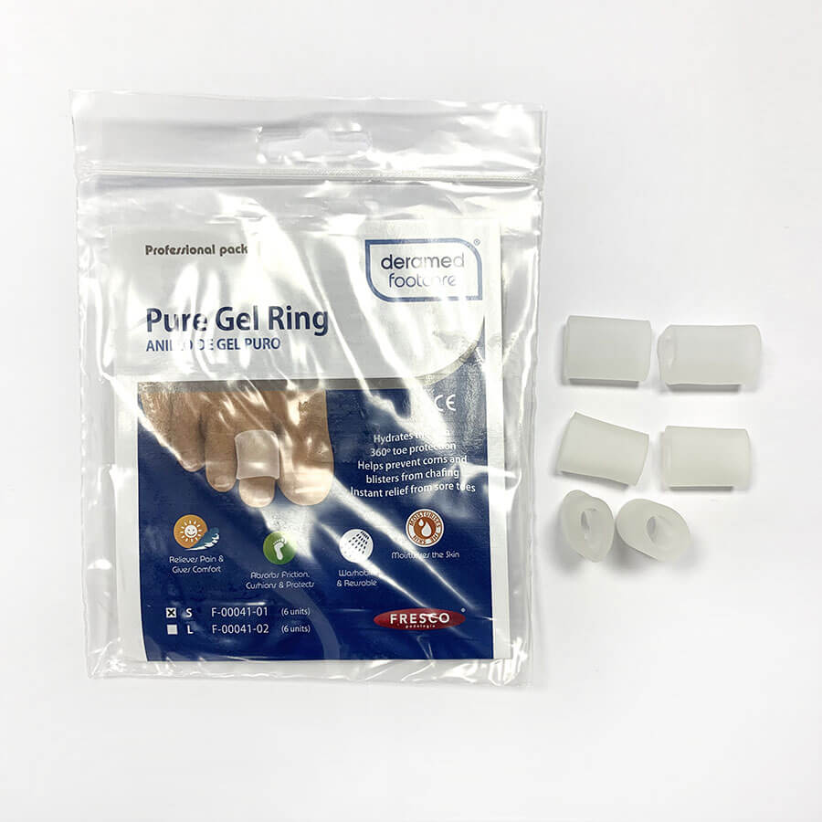 Гелевое кольцо применяется при мозолях межфаланговых суставов, при лечении деформаций пальцев: молоткообразные, перекрещивающиеся, когтеобразные пальцы. Предохраняет пальцы от трения при ходьбе, повреждений, натираний, раздражениях кожи, возникающих во время ношения обуви.