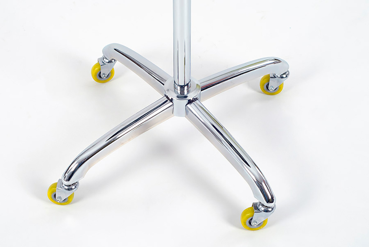 Тележка изготовлена из качественных материалов. Прочное хромированное основание на четырехлучье обеспечивает устойчивость модели, а благодаря прорезиненным колесам открытого типа тележку можно легко перемещать.