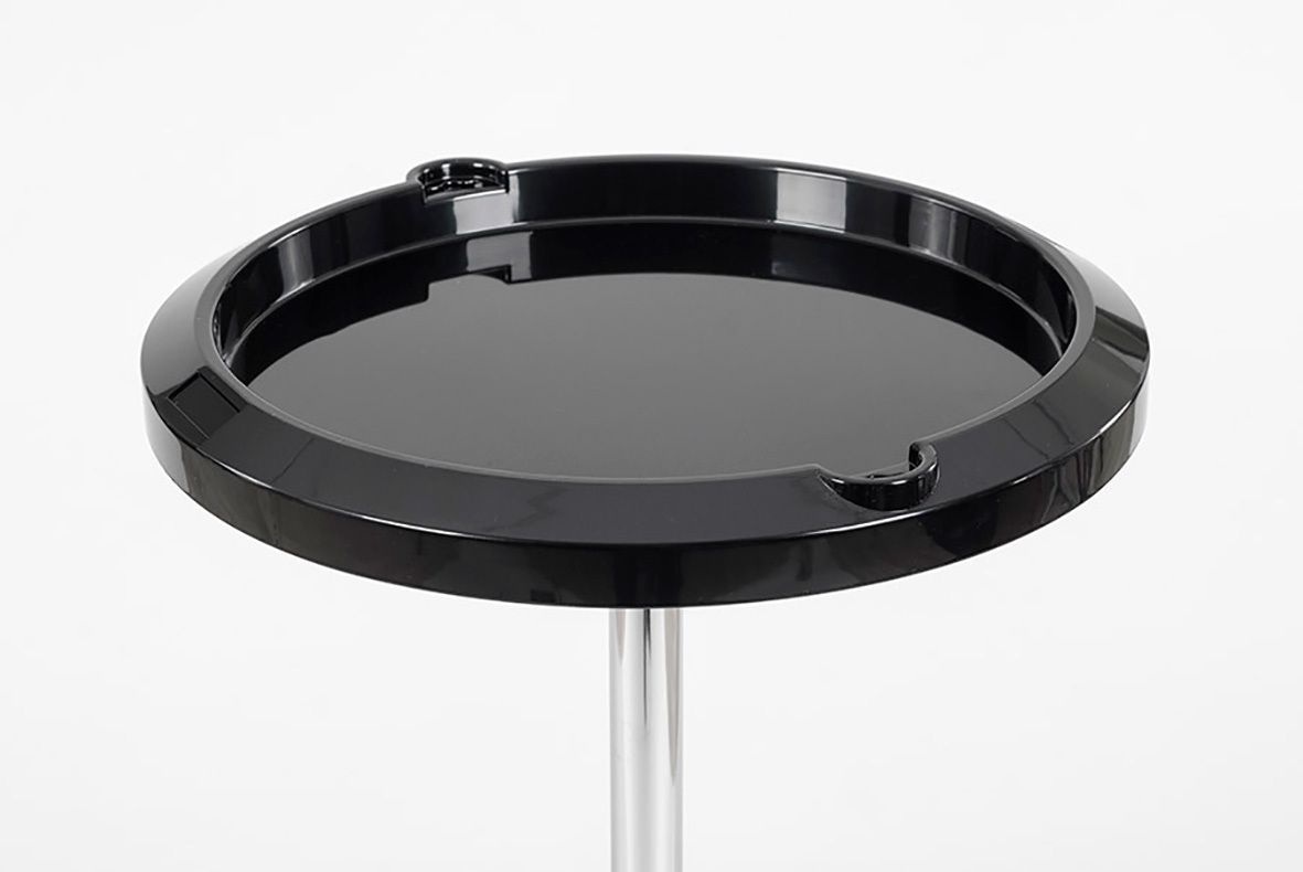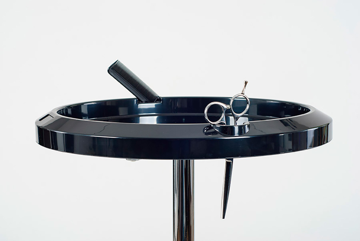Столешница из стойкого к воздействию косметических препаратов пластика оснащена небольшими бортиками и специальными отверстиями для ножниц, расчесок и кистей.
