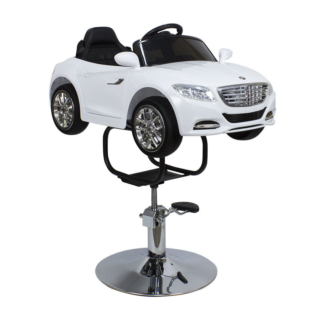 Стильное детское парикмахерское кресло МАШИНКА – отличный выбор для комфорта маленьких посетителей бьюти салонов. Модель выполнена в виде белой гоночной машинки BMW с ярким привлекательным дизайном. В ней есть ключ зажигания, при повороте которого включаются фары и задние фонари. Для удобства малыша автомобиль оснащен комфортным сиденьем с высокой спинкой. МАШИНКА установлена на металлический каркас и устойчивое хромированное основание в форме диска. Высота кресла регулируется с помощью надежного гидравлического подъемника от 845 до 945 мм. Данная модель подходит для детей от 3 до 6 лет.