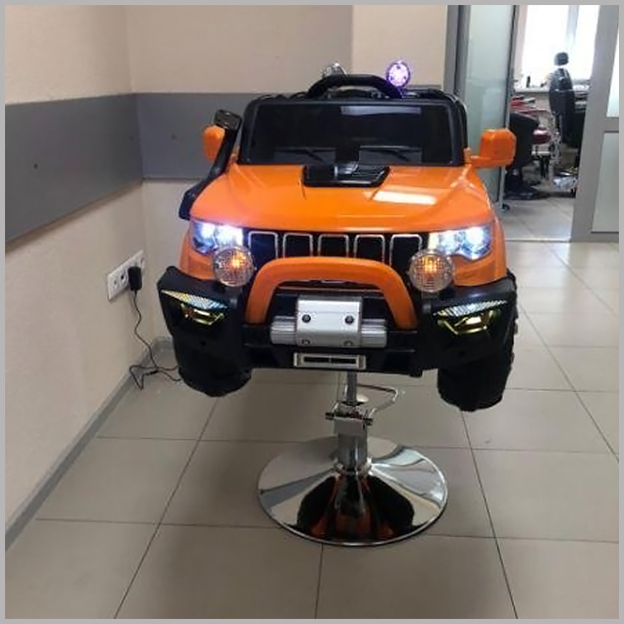 Высота детского парикмахерского кресла машинки регулируется с помощью гидравлического механизма.