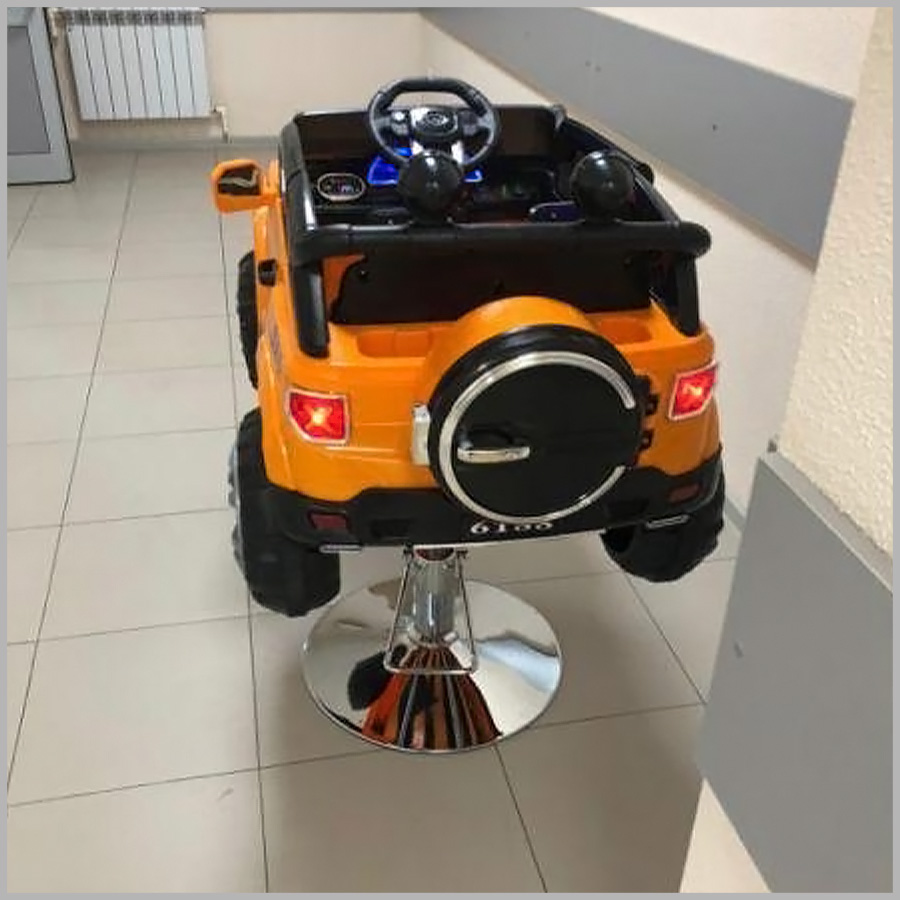 Высота детского парикмахерского кресла машинки регулируется с помощью гидравлического механизма.