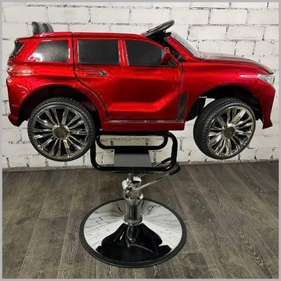 Высота детского парикмахерского кресла машинки регулируется с помощью гидравлического механизма.