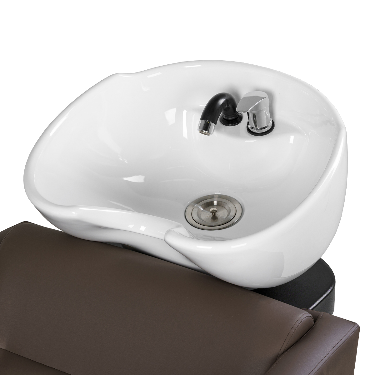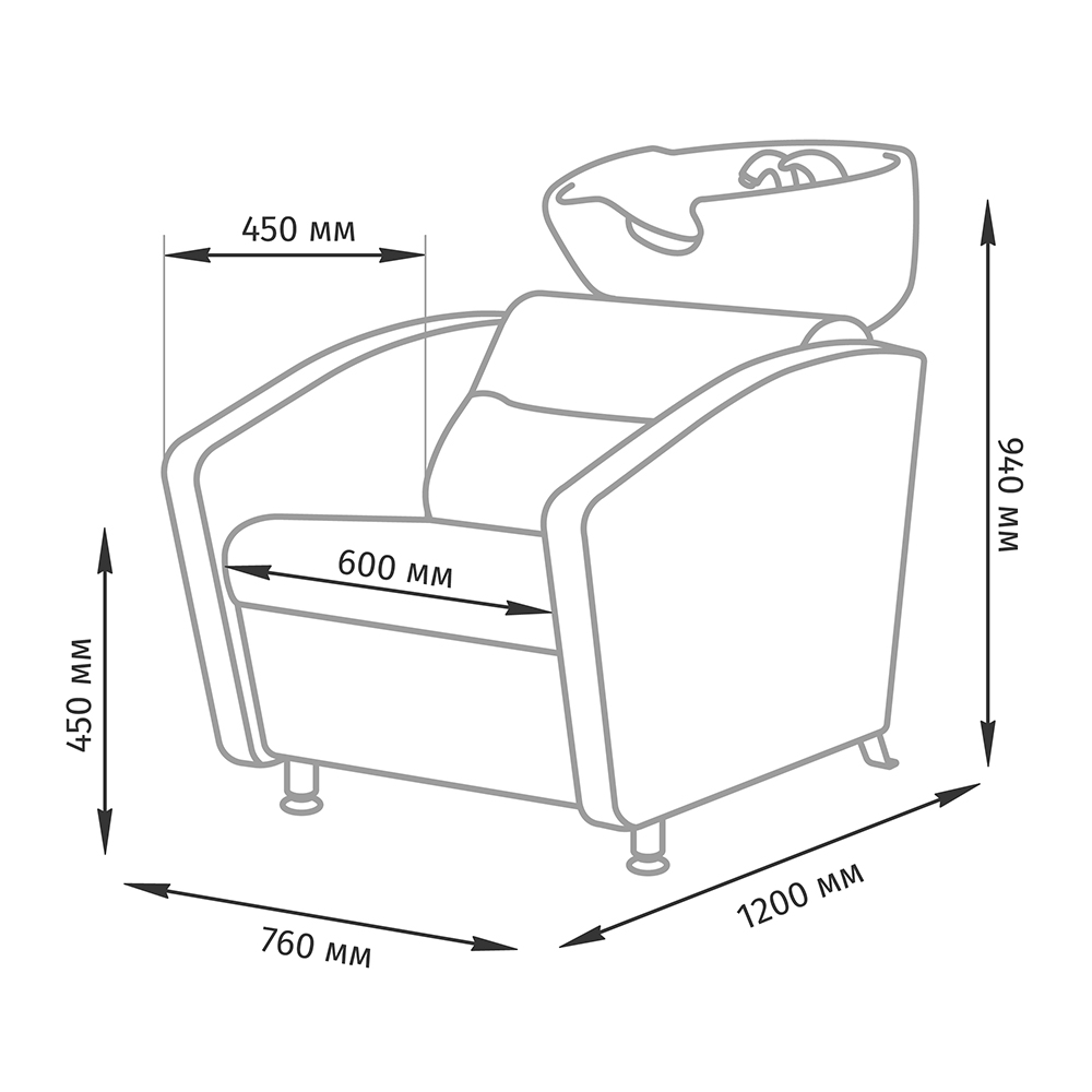 Посадочное место составляет 600 мм. Этот показатель гарантирует комфорт и эргономику изделия. Регулировка угла наклона раковины позволяет подобрать комфортнре положение для каждого клиента. У мойки универсальный дизайн, поэтому ее можно поставить в комплект с любым креслом.