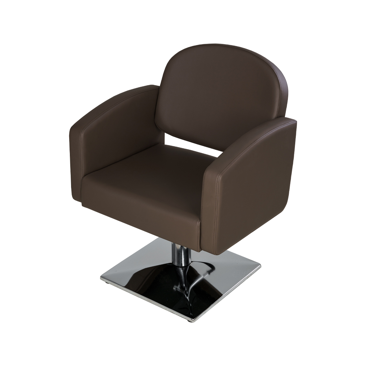 Каркас парикмахерского оборудования изготовлен из крепкого металла, что обеспечит долговечность и устойчивость кресла. Данная модель в базовом укомплектовании оснащена хромированным основанием в форме квадрата.