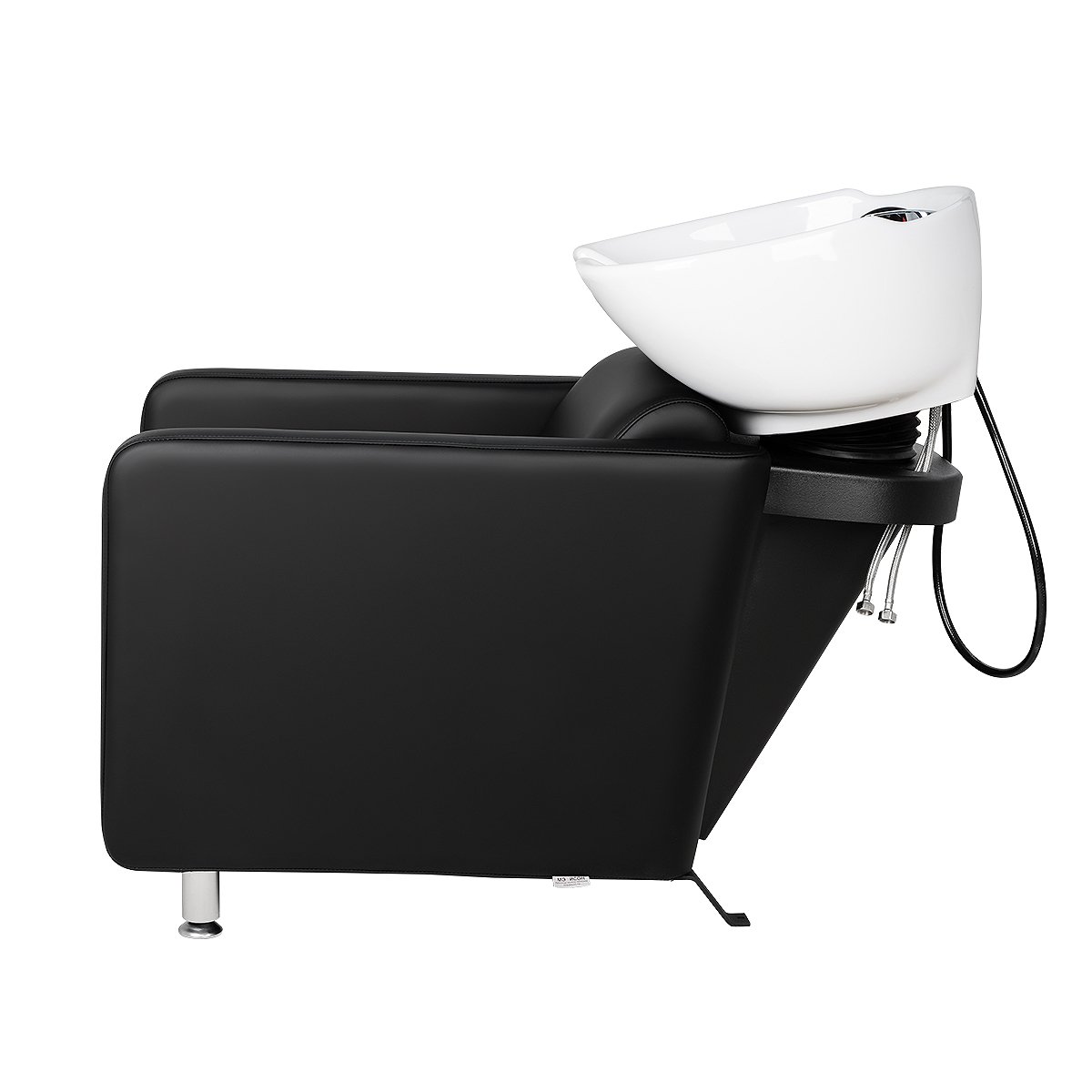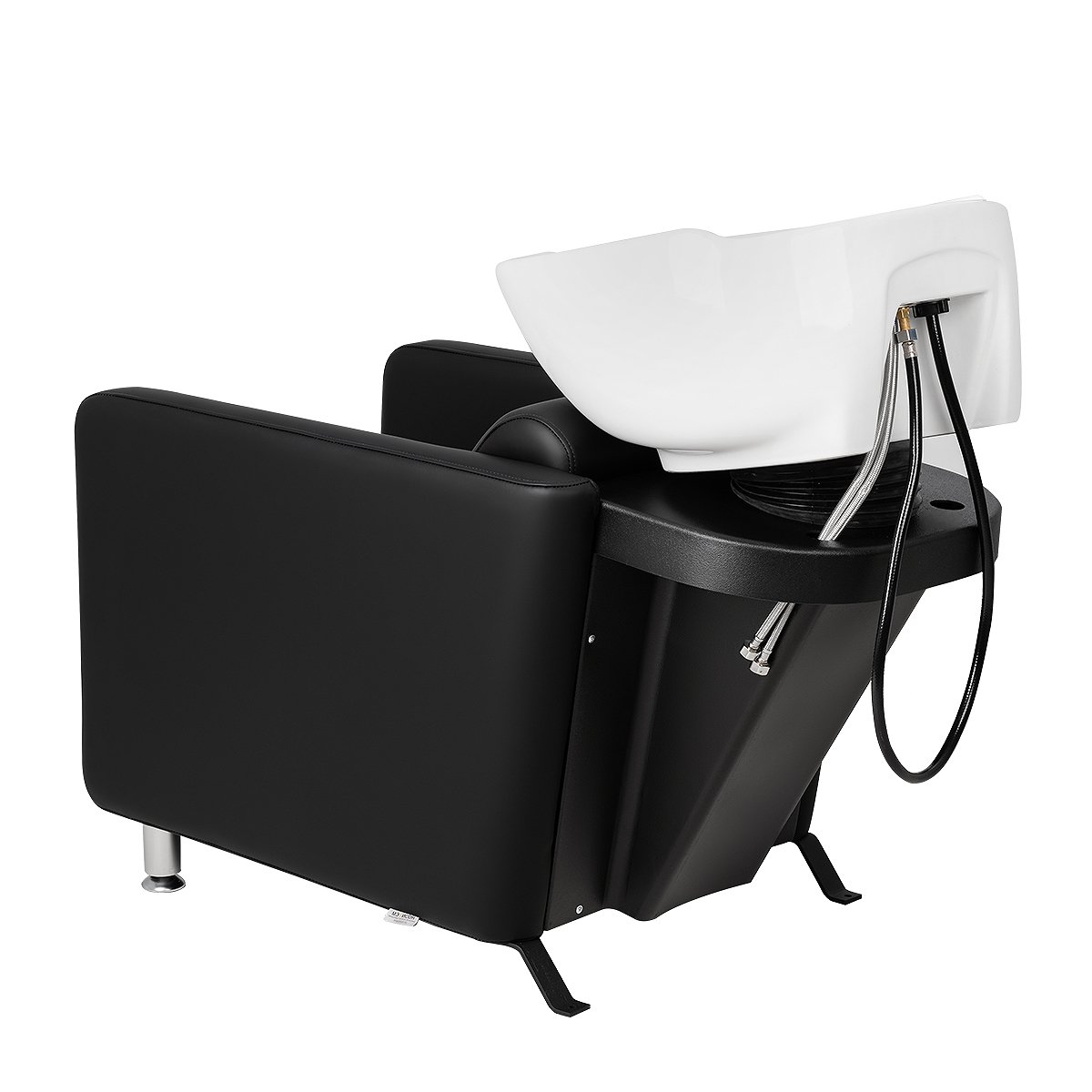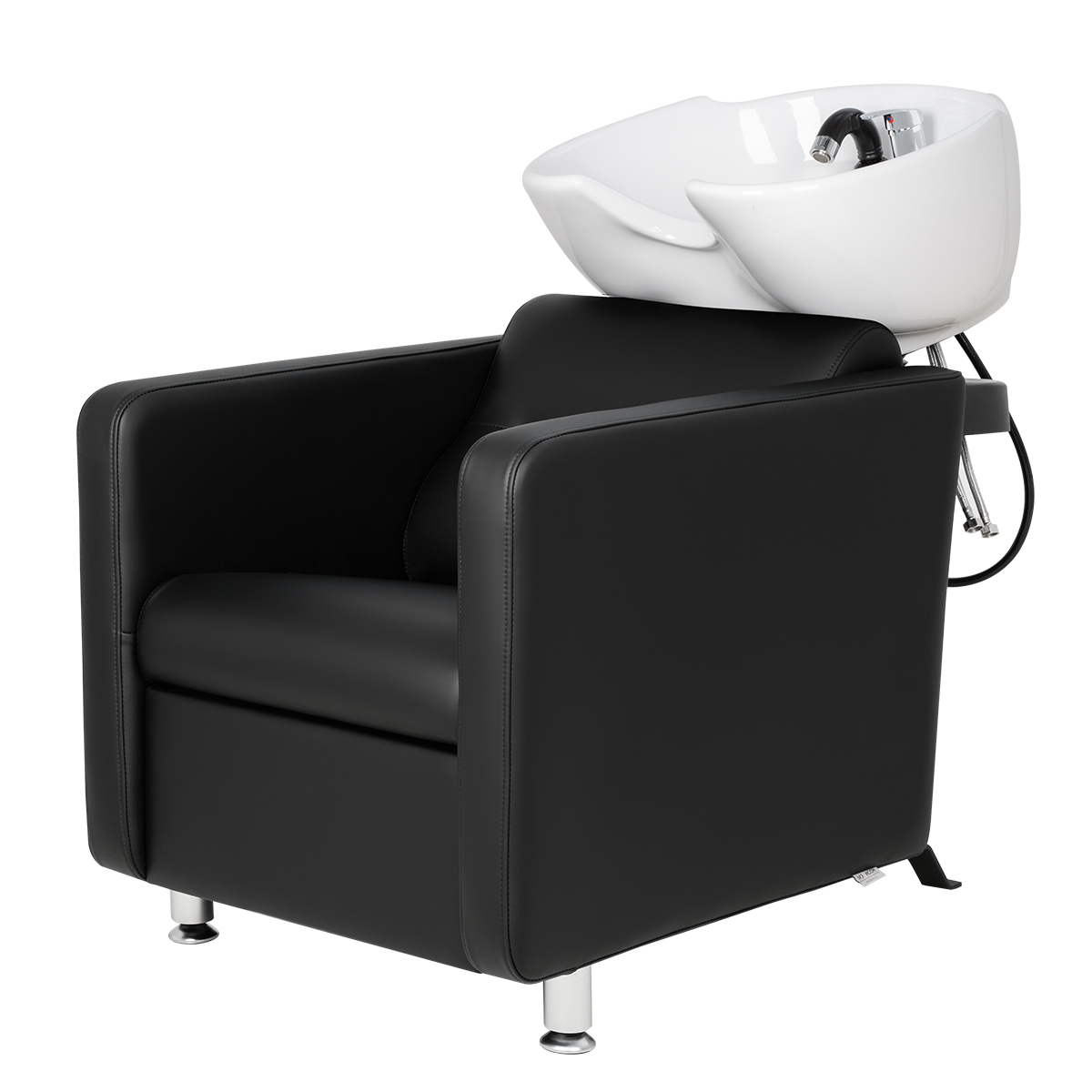 В базовую комплектацию входит глубокая белая керамическая раковина с набором необходимой сантехники. По желанию вы можете выбрать такую же раковину из черной керамики или глубокую, черного или белого цвета. Для индивидуального удобства клиентов наклон раковины регулируется. Универсальная модель, подойдет к любой модели кресла и в любой интерьер.