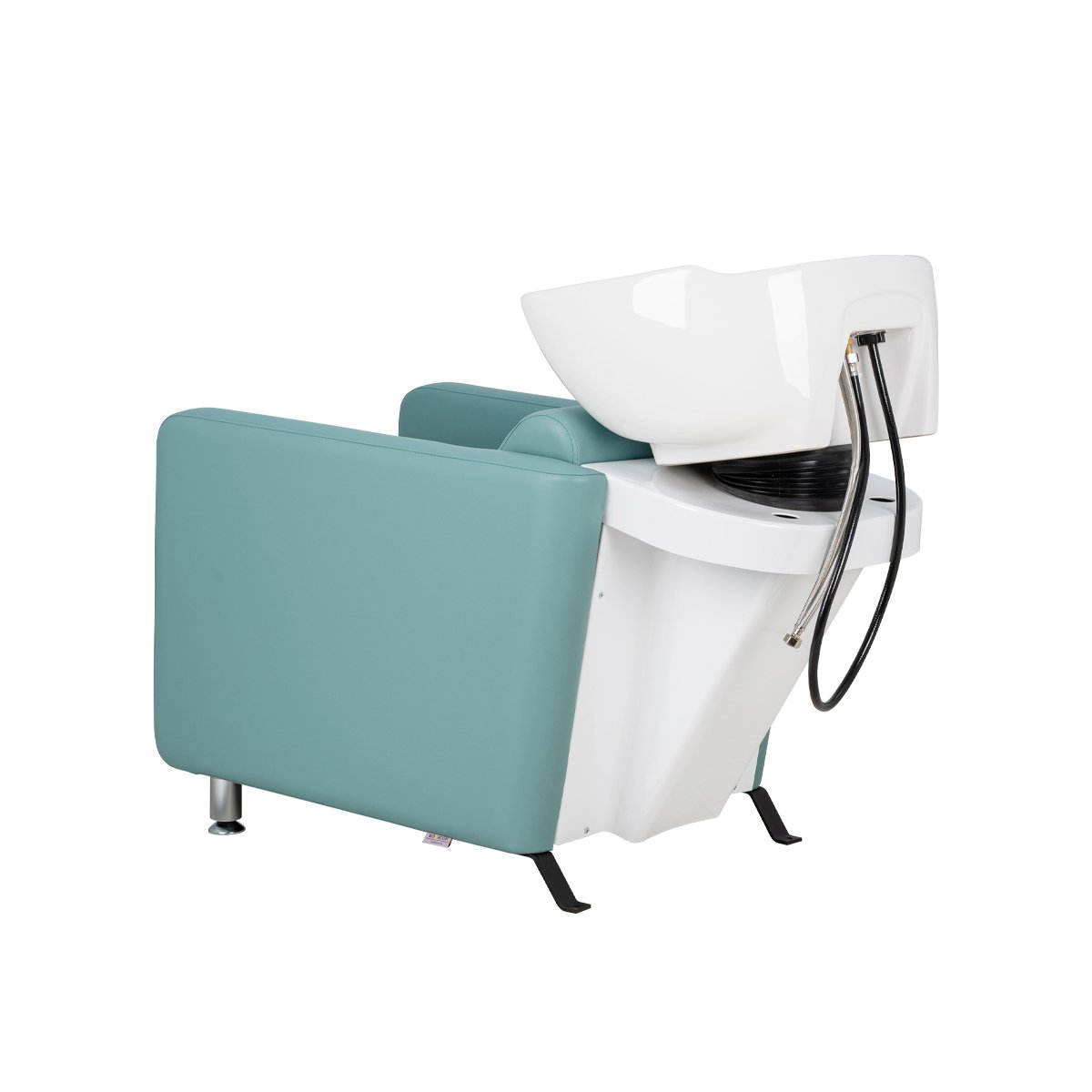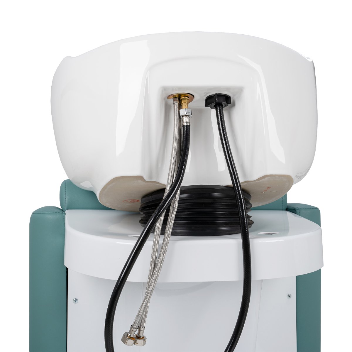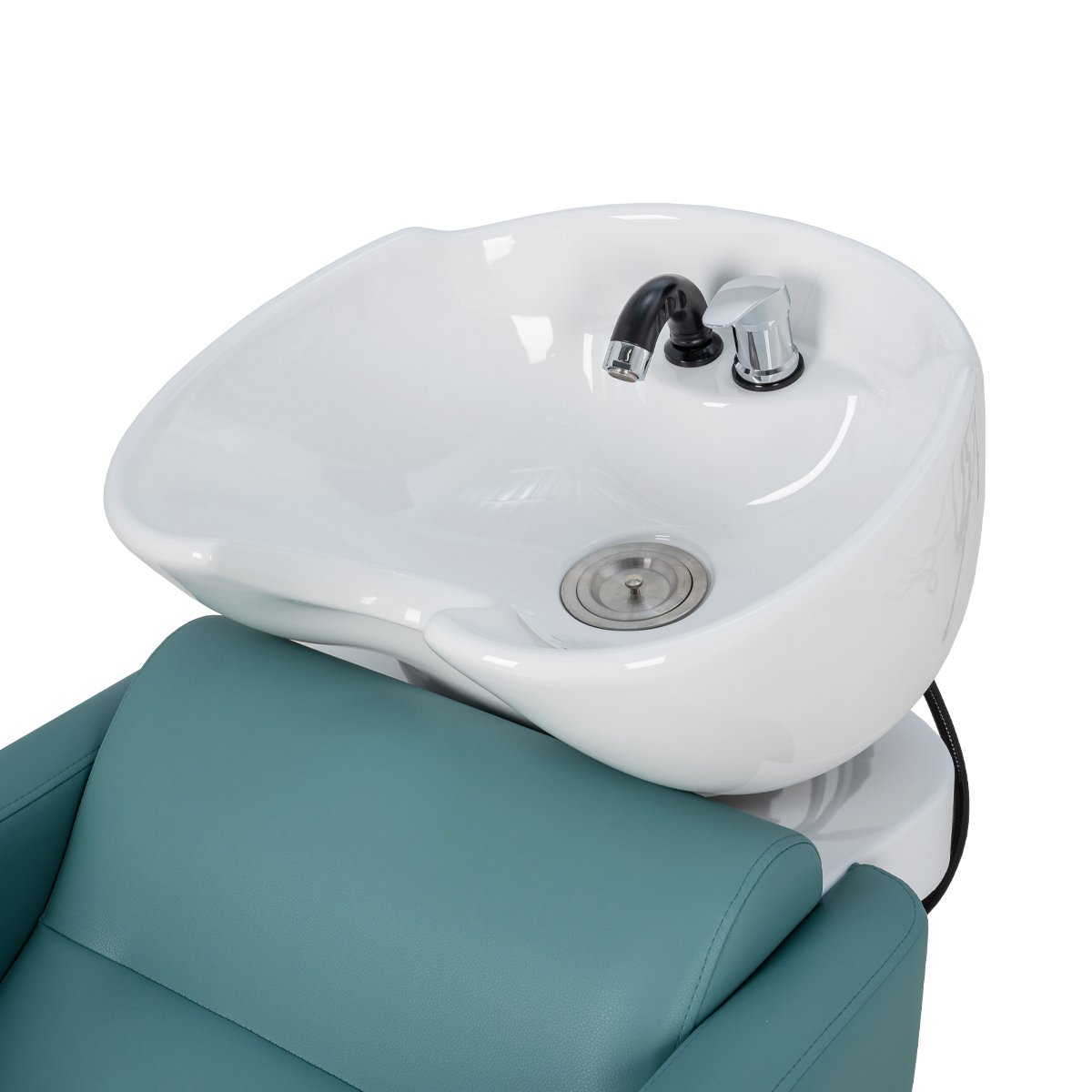 В базовую комплектацию входит глубокая белая керамическая раковина с набором необходимой сантехники. По желанию вы можете выбрать такую же раковину из черной керамики или глубокую, черного или белого цвета. Для индивидуального удобства клиентов наклон раковины регулируется. Универсальная модель, подойдет к любой модели кресла и в любой интерьер.