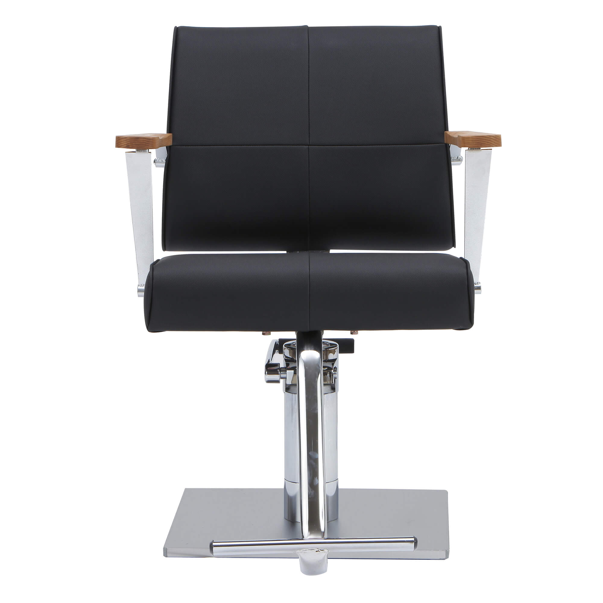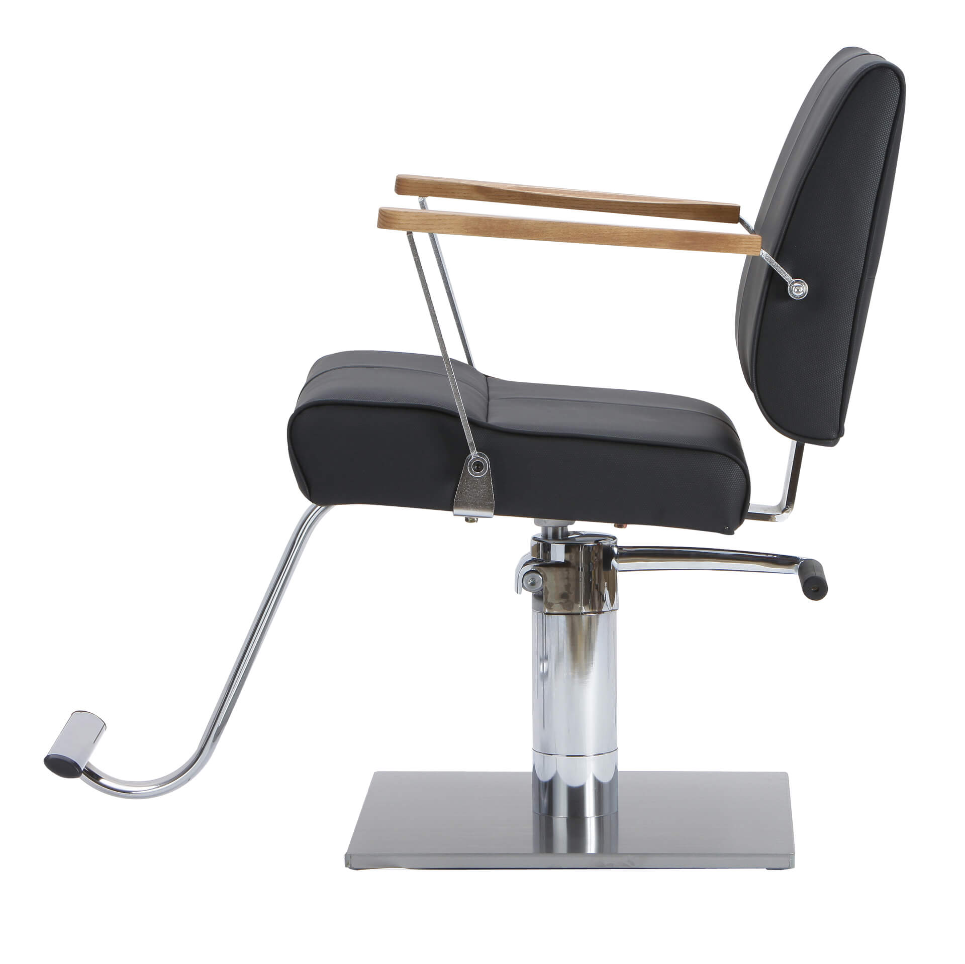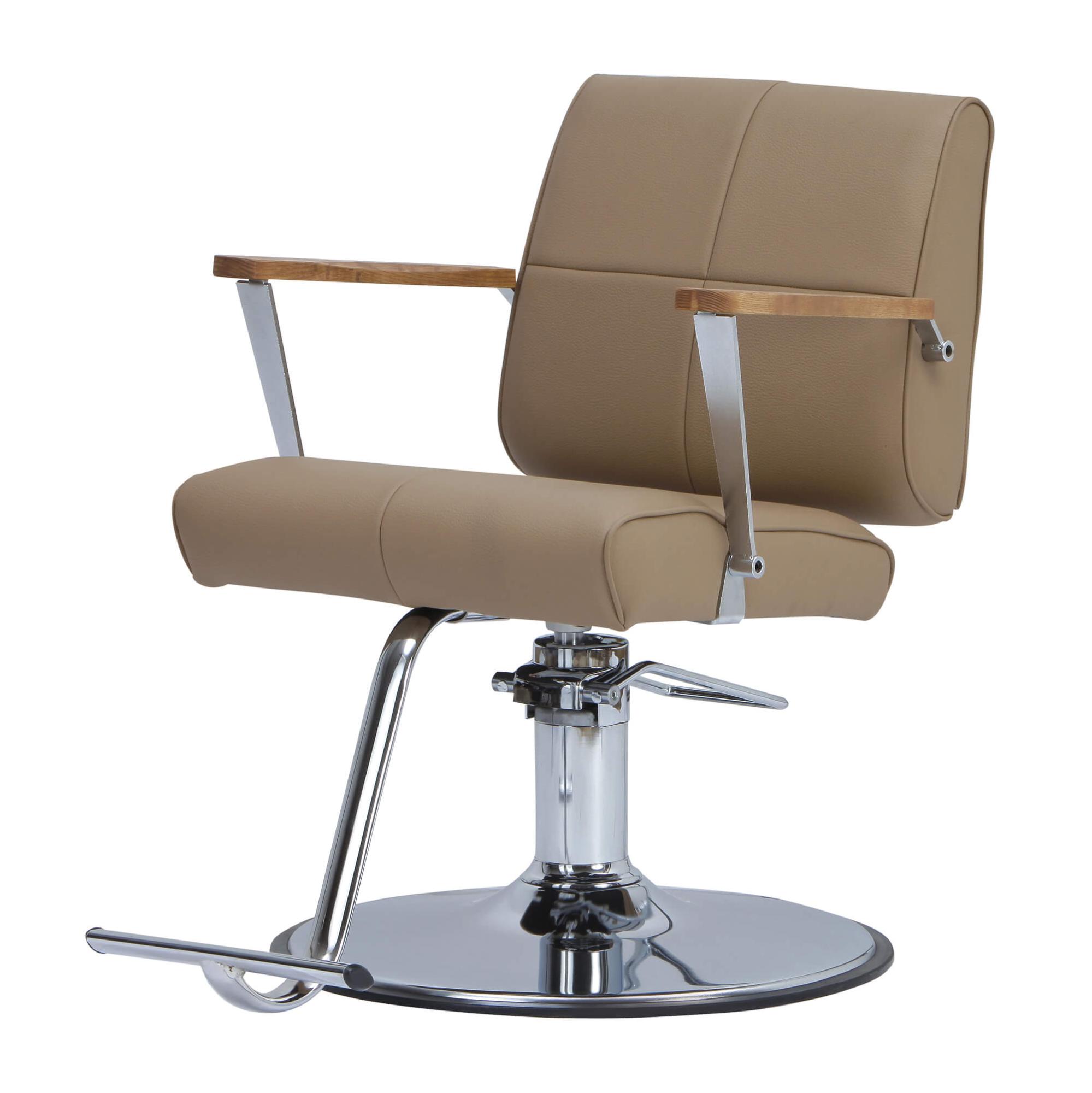 Стильное кресло с гармоничным сочетанием натурального дерева и металла, создающее эффектный акцент в интерьере салона. Идеально подходит для мастеров, ценящих элегантность и функциональность.