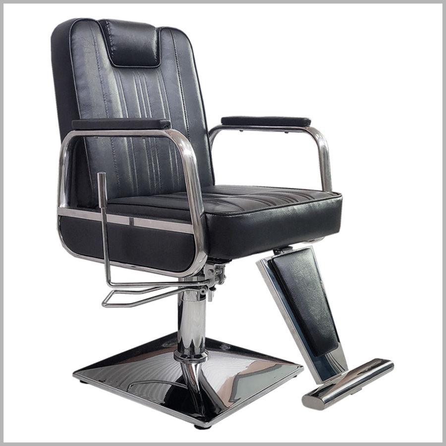 Это кресло станет не заменимом для салона, который оказывает любые профессиональные услуги по уходу за волосами и бородой. Эта модель кресла комплектуется для комфортного использования выдвижным подголовником, регулируемым углом наклона спинки и подножкой, а также надежным гидравлическим механизмом и хромированным квадратным основанием.