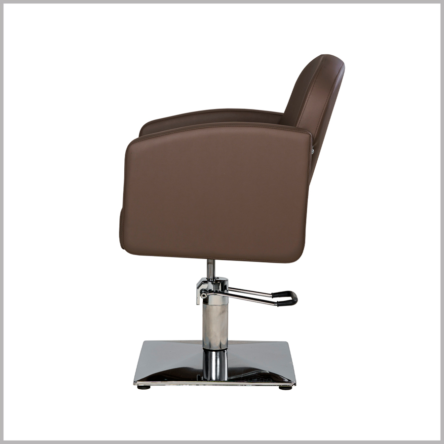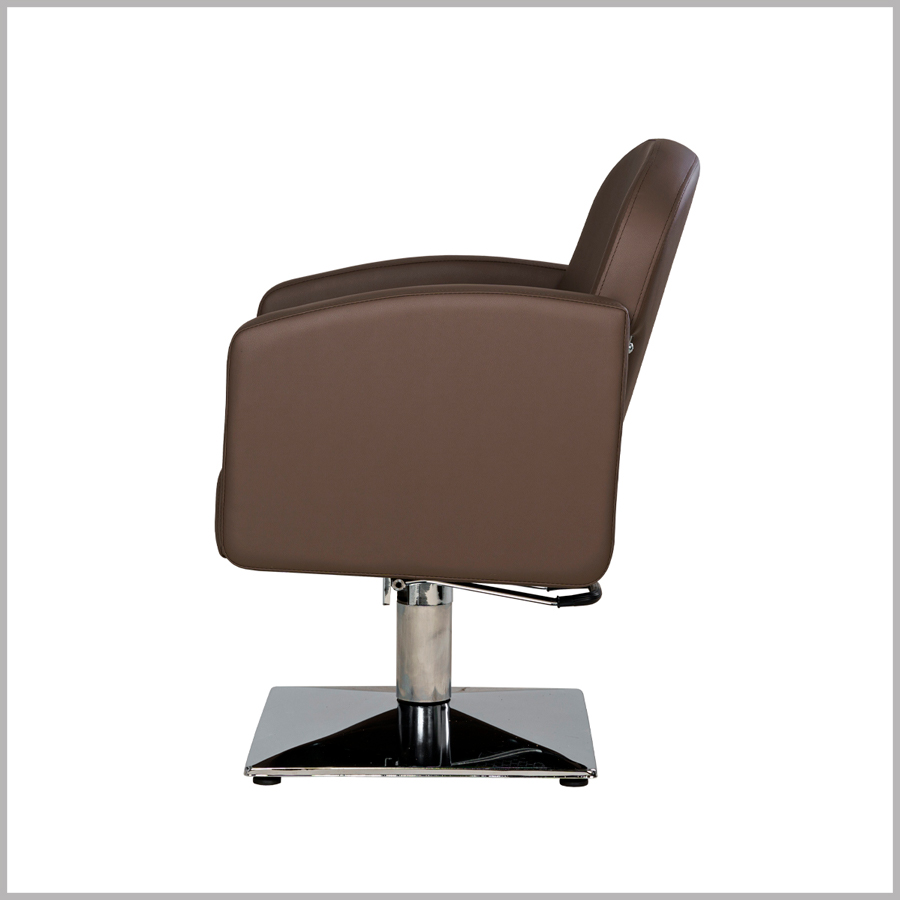 Каркас парикмахерского оборудования изготовлен из крепкого металла, что обеспечит долговечность и устойчивость кресла. Данная модель в базовом укомплектовании оснащена хромированным основанием в форме квадрата.