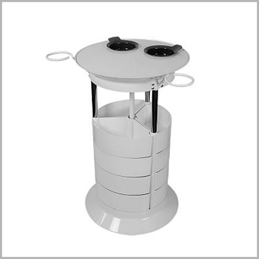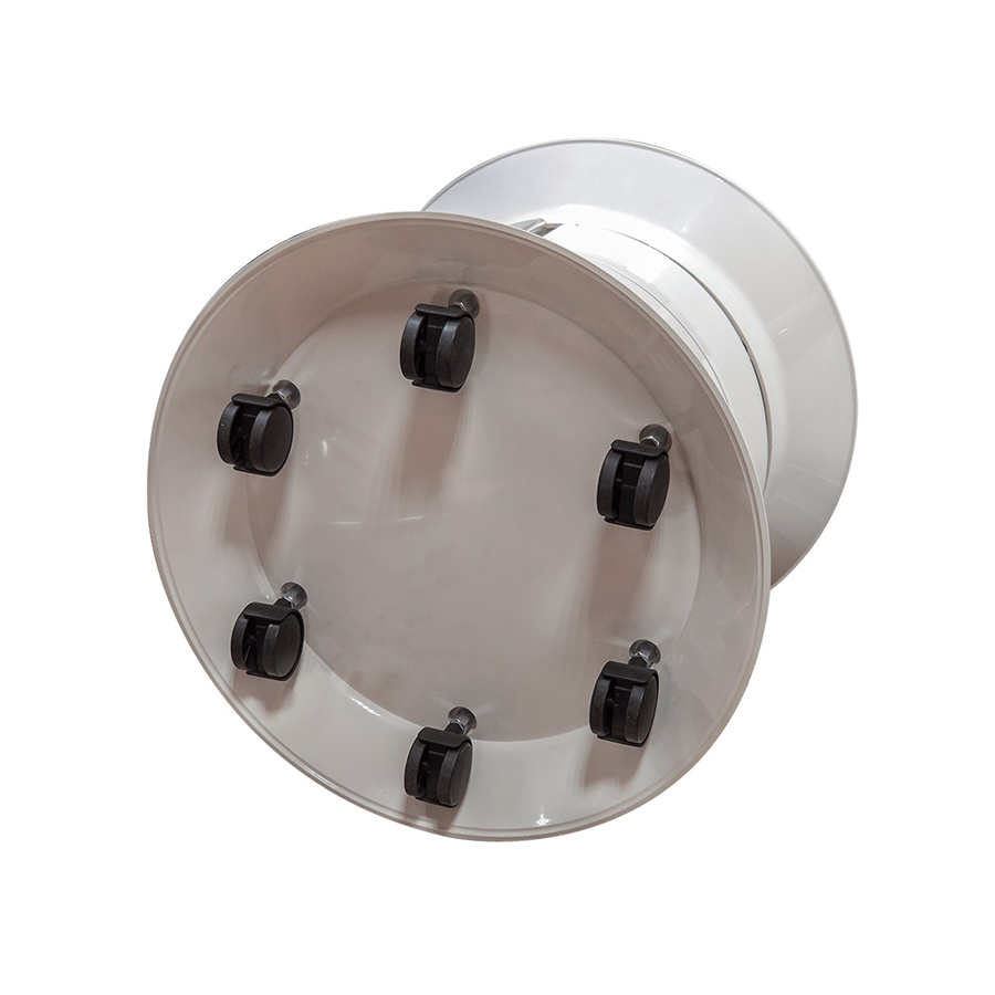 Тележка дополнена функциональной верхней крышкой с отверстием для чаш и емкостей. Наличие двух держателей для фенов позволит использовать тележку двум специалистам. Для легкого и быстрого перемещения оборудование оснащено шестью маневренными колесами.