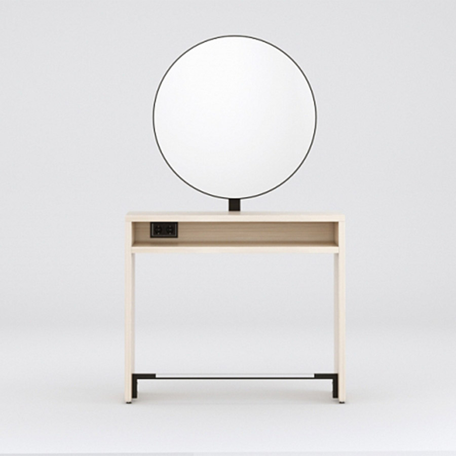 Зеркальное полотно в форме идеального круга, надёжный устойчивый столик из ЛДСП толщиной 32 мм, вместительные столешница и полка для инструментов, мощная металлическая подножка с накладкой из нержавеющей стали, регулируемые опоры и возможность оборудовать скрытые розетки для электроинструмента.