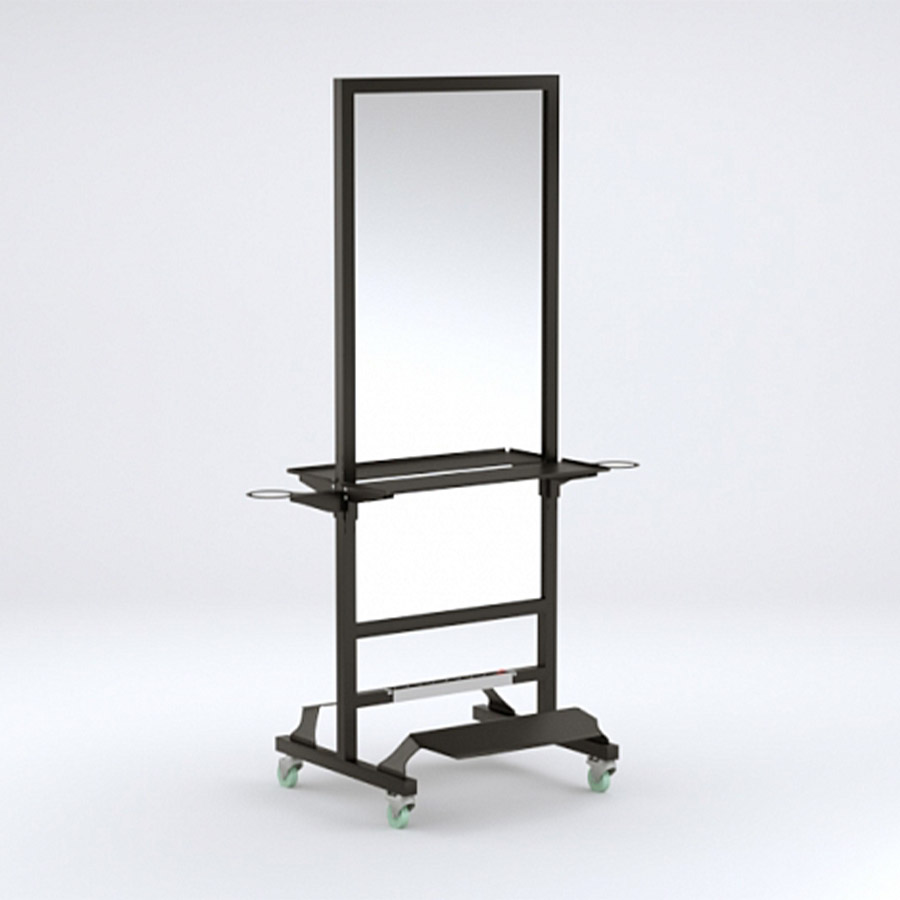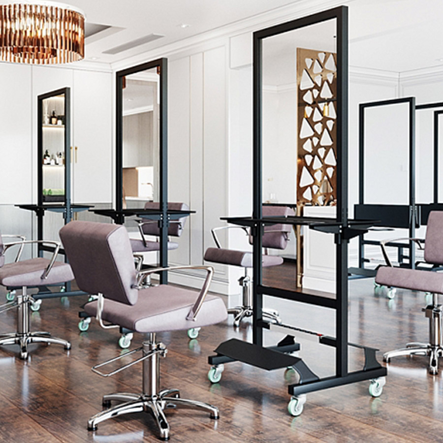 Мобильное парикмахерское зеркало MODUS изготовлено из прочного металлического профиля и оснащено надежными прорезиненными колесами, обеспечивающими ему высокую мобильность. Зеркальные полотна большой площади позволяют организовать на минимальном пространстве два рабочих места парикмахера.