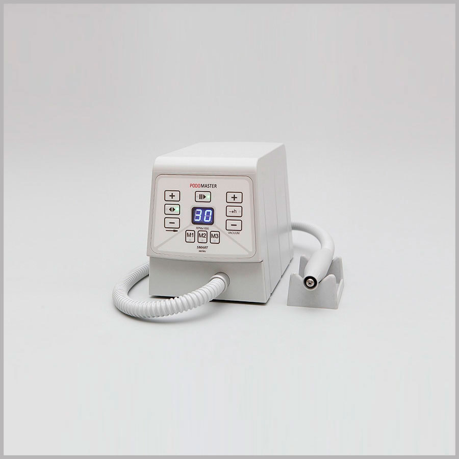 Преимущества педикюрных аппаратов Podomaster Smart- Эргономичность - легкий и удобный наконечник микромотора имеет овальную форму и выполнен из матированного пластика. Благодаря такой конструкции прибор не нагревается в процессе процедуры и не выскальзывает из рук мастера.