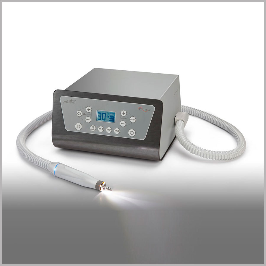 Ручка аппарата оснащена беcщеточным микромотором с максимальной скоростью в 30 000 оборотов в минуту. Новая эргономичная форма ручки позволяет комфортно работать долгое время. LED – ring, интегрированное в основание ручки информирует об активности работы микромотора и является индикатором нагрузки в зависимости от усилий, прикладываемых при работе.
