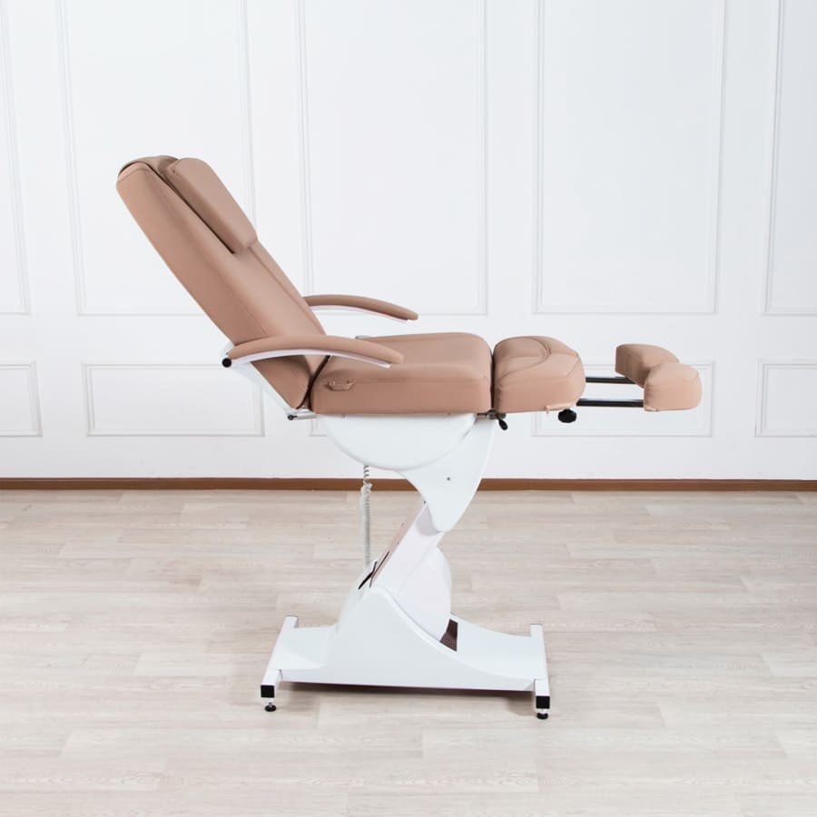 В кресле можно проводить косметологический массаж, педикюр, или оказывать другие услуги. Изделие оснащено электромотором, а также подъемным устройством, которое позволяет увеличивать высоту кресла до 1 метра. Настройки спинки меняются в зависимости от специфики оказания услуги. Основные особенности кресла:
