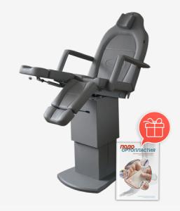 Педикюрное кресло оснащено тремя электромоторами, обеспечивающими регулировку высоты, угла наклона спинки и угла наклона сиденья. Опоры для ног фиксируются при помощи газ-лифтов. Кресло легко раскладывается в горизонтальное положение, образуя ровную поверхность. Надежная конструкция системы подъема обеспечивает высокую устойчивость кресла даже при максимальной высоте. Управляется при помощи ручного проводного пульта